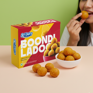 At Sri Dairy, we bring you the finest Boondi Ladoo, crafted with premium ingredients, authentic recipes, and a touch of tradition. Made with high-quality gram flour (besan), pure ghee, fragrant cardamom, and the perfect amount of sweetness, our ladoos are prepared to perfection, ensuring a rich and balanced flavor in every bite. Whether you're celebrating festivals like Diwali, Raksha Bandhan, or Ganesh Chaturthi, hosting a wedding, birthday, or simply craving something sweet, our Boondi Ladoo is the perfect treat for every occasion.
