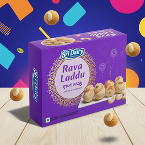 Rava laddu (Rava Ladoo) is a popular South Indian sweet that's quick to make, usually ready in just 10-15 minutes. Different places have their own ways of making it - some use powdered rava with milk, while others prefer whole rava with milk or sugar syrup. At Sri Dairy, we follow the traditional method using whole rava. We carefully roast the rava to a perfect light golden color before mixing it with other ingredients to form laddus. The secret to our delicious taste comes from getting the right consistency and slow roasting for authentic flavor.